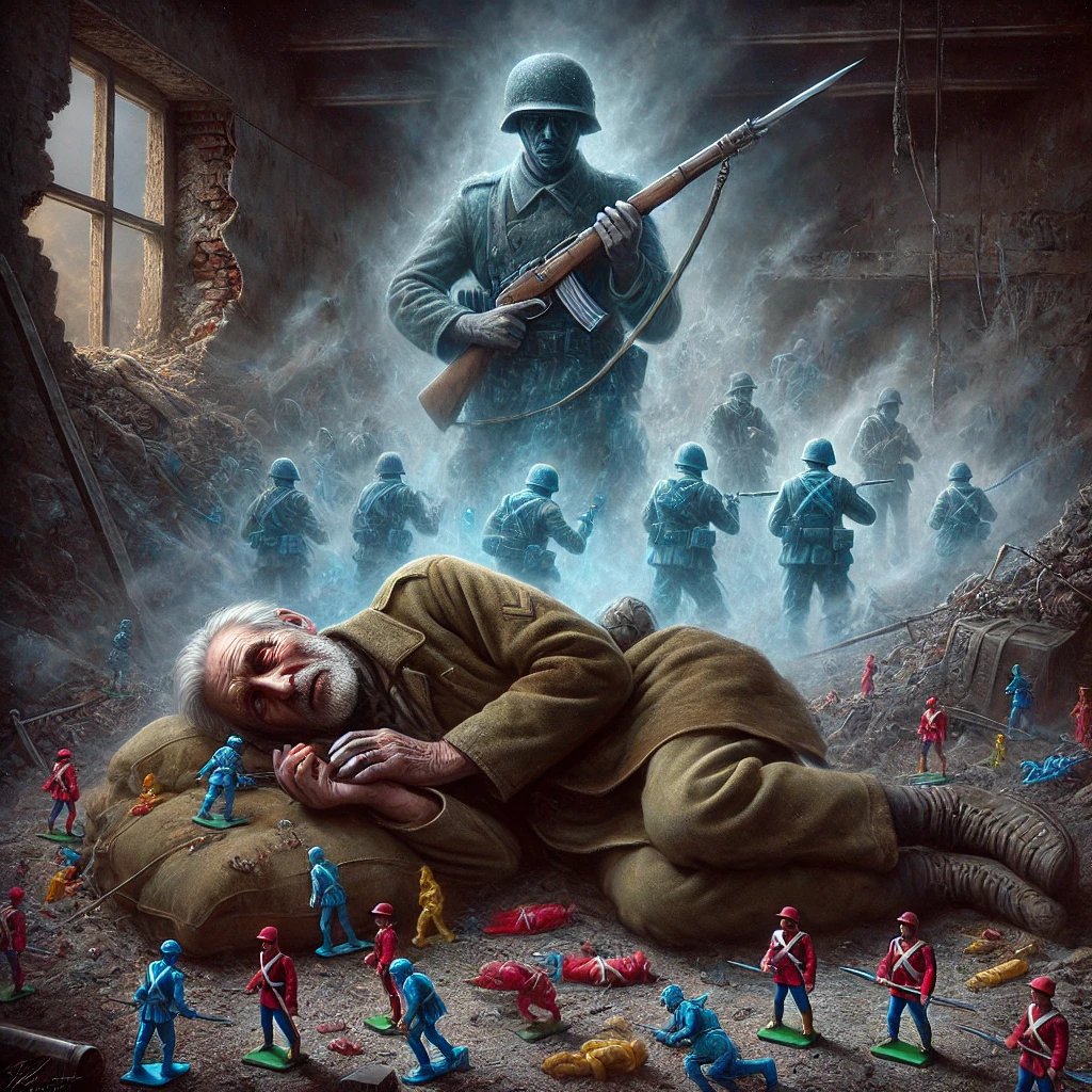 [justify]Jonás abrió un ojo. El izquierdo. El párpado derecho, pegajoso y pesado, no encontró la fuerza suficiente para vencer el coágulo de sangre que se expandía con insistencia. El olor a humo y metal quemado se filtraba en sus fosas nasales, como un recordatorio de un pasado cercano que su memoria, confusa, aún no lograba reconstruir. No sabía dónde estaba. No entendía lo que su ojo izquierdo veía. No reconocía nada, salvo el dolor. Ese dolor lacerante, constante, que lo anclaba a una única certeza: Jonás aún estaba vivo.[/justify] [justify][/justify] [justify]No recordaba cuándo ni dónde se había acostado, mucho menos el lugar extraño en el que estaba despertando ahora. Su lecho le resultaba hostil, tan extraño como incómodo.[/justify] [justify][/justify] [justify]—¿Otra vez me caí de la cama? —pensó Jonás, aunque no podía recordar ni una sola ocasión en la que realmente hubiese rodado fuera de su colchón.[/justify] [justify][/justify] [justify]—Cosas de la edad —murmuró para sí, resignado.[/justify] [justify][/justify] [justify]Su ojo izquierdo comenzó a vagar, curioseando con la lentitud de quien apenas puede enfocar. Se detuvo en lo que parecía ser su almohada. Era durísima, de un color caqui opaco, y estaba surcada por pequeños fragmentos de plástico. Una chapa dorada, brillante incluso en la penumbra, le devolvió una ráfaga de memoria. Por primera vez desde que había abierto los ojos, recordó algo con claridad: quién era.[/justify] [justify][/justify] [justify]***[/justify] [justify][/justify] [justify]El recuerdo emergió como una visión espectral, envolviéndolo por completo. Vio sus manos de niño, pequeñas y torpes, sujetando con fuerza figuras diminutas, hechas de plomo y cubiertas con pintura descuidada. Los colores caqui y rojo pretendían imitar uniformes militares, y las minúsculas manos de plomo sostenían armas que parecían letales a pesar de su escala ridícula. Décadas habían pasado desde la última vez que Jonás pensó en los soldaditos de plomo que lo acompañaron durante su niñez. Sin embargo, la sensación de familiaridad era inconfundible: la superficie de su "almohada" evocaba los recuerdos de aquellos días de juegos y fantasía bélica.[/justify] [justify][/justify] [justify]Movió su mano derecha, palpando la dura superficie. No era una almohada. Era fría, sólida y pesada, como el plomo. Sus ojos se enfocaron lentamente en la chapa dorada, y no tardó en comprender: era una insignia militar. Forzó su vista aún más, buscando detalles entre los escombros que lo rodeaban. Y entonces lo vio. Los restos de lo que alguna vez había sido la pared norte del Hospital Central yacían sobre la cabeza de un soldado inmóvil. No, no un soldado. Una estatua de carne endurecida por la muerte. El brazo derecho del hombre estaba extendido, rígido, y su mano apretaba un arma que seguía apuntando hacia los pies de Jonás.[/justify] [justify][/justify] [justify]Los colores caqui y rojo de aquel cadáver le recordaron al bando de sus juegos infantiles. En aquellos tiempos, los soldados de plomo pintados de caqui y rojo siempre luchaban contra el otro ejército: figuras azul oscuro. Las batallas eran épicas, interminables, sin treguas ni negociaciones. El único final aceptable era la aniquilación total de un bando. Jonás, como amo absoluto de ese universo de plomo, siempre se aseguraba de que los soldados de azul perdieran.[/justify] [justify][/justify] [justify]Un estruendo devolvió a Jonás al presente. El suelo vibró bajo su cuerpo, y una nube de polvo se levantó entre los escombros, cegándolo por un momento. Cuando la polvareda comenzó a asentarse, apareció un grupo de figuras humanas que avanzaba con paso firme. De la nube emergió un pelotón de soldados de carne y hueso, de tamaño real, vestidos con uniformes teñidos de azul. Sus miradas inyectadas de odio, los labios apretados y las armas que llevaban en alto no dejaban lugar a dudas: eran el enemigo. Y estaban ganando.[/justify] [justify][/justify] [justify]Jonás sintió una oleada de indignación que lo recorrió de pies a cabeza. El bando azul, ese que siempre había perdido en sus juegos de infancia, ahora marchaba frente a él, victorioso. Su brazo, tembloroso y envejecido, se alzó con un impulso que parecía imposible. Sus dedos se aferraron con fuerza a la mano rígida del cadáver que servía de "almohada", y con un último esfuerzo, levantó el arma que esta sujetaba.[/justify] [justify][/justify] [justify]El arma, metálica y fría, parecía pesar toneladas, pero Jonás no se detuvo. Apretó el gatillo con firmeza. Un estallido rompió el aire, y una ráfaga de plomo verdadero perforó los cuerpos de los soldados de azul, atravesando cabezas y torsos. Uno tras otro cayeron al suelo, como figuras de plomo derribadas en un juego infantil. Ninguno quedó en pie.[/justify] [justify][/justify] [justify]Jonás dejó caer el arma y se recostó de nuevo, agotado. Una sonrisa apareció en su rostro, pequeña pero radiante, como la de un niño que acaba de ganar la más emocionante de las batallas. Por un instante, sus ojos brillaron con una intensidad que no correspondía a los años que cargaba sobre sus hombros. Fue la última expresión que su rostro, surcado por los años y las guerras, pudo formar.[/justify] [justify][/justify] [justify]Cuando la polvareda volvió a asentarse, el silencio reinó por un momento. El cuerpo de Jonás, inmóvil ahora, yacía entre los escombros, rodeado por los restos de los soldados que había abatido. Pero no pasó mucho tiempo antes de que nuevas figuras comenzaran a aparecer. Un grupo de civiles, ataviados con ropas desgastadas y rostros marcados por el terror, emergió desde las sombras.[/justify] [justify][/justify] [justify]***[/justify] [justify][/justify] [justify]Una niña de cabello enmarañado se adelantó al resto, sus ojos abiertos de par en par. Se acercó lentamente al cuerpo de Jonás y al ar