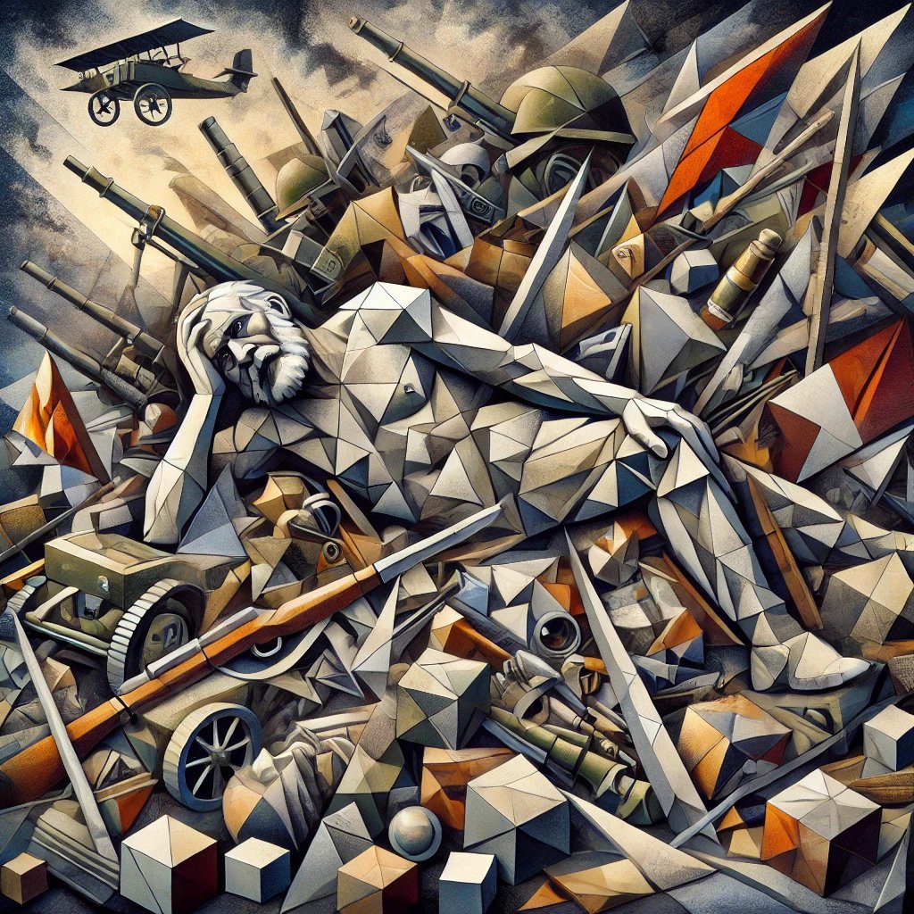 [h2]Jonah opened one eye. The left one. The right eyelid couldn’t summon the strength to overcome the blood clot that was stubbornly spreading. The smell of smoke and burnt metal seeped into his nostrils, a faint trace of a recent past he could not recall. He didn’t recognise where he was. He didn’t recognise what his left eye was seeing. He recognised nothing, except the pain. The pain was what brought him to an undeniable conclusion: Jonah realised he was still alive.[/h2] [h2] [/h2] [h2]He couldn’t remember when or where he had gone to bed, much less the unfamiliar place where he was now waking up. His resting place felt hostile, utterly foreign and unbearably uncomfortable.[/h2] [h2] [/h2] [h2]“Did I fall out of bed again?” Jonah wondered, though he couldn’t recall a single occasion when that had ever happened.[/h2] [h2]“Must be my age,” he muttered resignedly.[/h2] [h2] [/h2] [h2]His left eye began to scan his surroundings, its movements slow and tentative. It focused on what seemed to be his pillow. It was unbearably hard and an unappealing shade of khaki. Small pieces of plastic were scattered across it, and a gleaming golden badge caught his eye. That small detail summoned his first clear memory since waking: a memory of who he was.[/h2] [h2] [/h2] [h2]The memory took shape as if conjured by a ghostly hand, pulling him back to a long-forgotten scene. He saw his hands as a boy, small and clumsy, clutching tiny figures of lead. The figures, crudely painted, were coloured khaki and red. The paint mimicked military uniforms, and the miniature lead hands held sharp, threatening weapons. Decades had passed since Jonah had last thought about the toy soldiers of his childhood, but the sight of his current, unpleasant "pillow" brought the memory rushing back, vivid and bittersweet.[/h2] [h2] [/h2] [h2]He moved his right hand, reaching out to touch his "pillow". It was cold, unyielding, and heavy as lead. His eye strained to focus on the golden badge, which now seemed unmistakably like a military insignia. Examining his pillow further, Jonah realised it wasn’t a pillow at all. It was the head of a fallen soldier, buried beneath the rubble of what had once been the north wall of the Central Hospital. The soldier's right arm lay rigidly outstretched, his hand gripping a weapon—sharp and menacing—that pointed directly at Jonah's feet.[/h2] [h2] [/h2] [h2]The khaki and red uniform of the lifeless soldier stirred more memories of Jonah’s childhood. Back then, his lead soldiers painted in khaki and red always fought against another army: those painted in navy blue. The battles had been epic and relentless. There were no truces, no negotiations. The tiny figures fought until one army was entirely vanquished, with no survivors left standing. In those games, Jonah always ensured the blue-painted soldiers lost.[/h2] [h2] [/h2] [h2]A deafening noise shook Jonah back to the present, rattling his leaden “pillow”. Dust rose from the ground in a suffocating plume, and out of the haze emerged a platoon of soldiers. These were no tiny figurines. They were flesh and blood, full-sized, and their sharp, threatening weapons gleamed with cold precision. Their uniforms were made of polyester, dyed in navy blue. The soldiers marched past Jonah with deliberate steps, their faces contorted with rage, their eyes bloodshot. Everything about them conveyed a single, inescapable truth to Jonah: the soldiers in blue were winning.[/h2] [h2] [/h2] [h2]Jonah felt a wave of indignation rise within him, burning away the fog of pain and confusion. The blue army—the one that had always lost in his childhood games—was now victorious, striding past him like conquerors. His aged arm trembled as he stretched it out, grasping the stiff hand of his "pillow". With a strength that seemed to defy his frail body, Jonah lifted the soldier's rigid hand, turning the weapon towards the advancing troops.[/h2] [h2] [/h2] [h2]The gun was cold and heavy, its weight pressing against Jonah’s weakening grip. But he did not falter. His fingers found the trigger, and with all the force he could muster, he pulled. The weapon roared to life, unleashing a volley of real lead. The bullets tore through the blue-clad soldiers, shattering their heads and torsos. One by one, they fell, crumpling to the ground like broken dolls. Not a single one was left standing.[/h2] [h2] [/h2] [h2]The weapon slipped from Jonah’s grasp as he collapsed back onto the rubble, his body spent. A faint smile curved across his lips, small but radiant, the kind of smile only a child brimming with life could wear. For a brief moment, his eyes sparkled with a vitality that seemed to erase the years etched into his face. It was the last expression his weathered, battle-hardened features would ever form.[/h2]